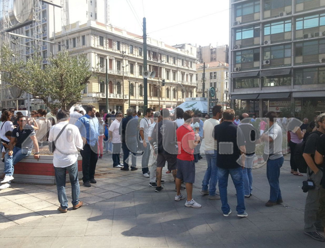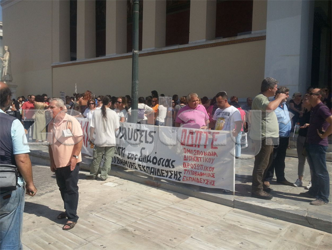(Η συγκέντρωση των διοικητικών υπαλλήλων στα Προπύλαια)