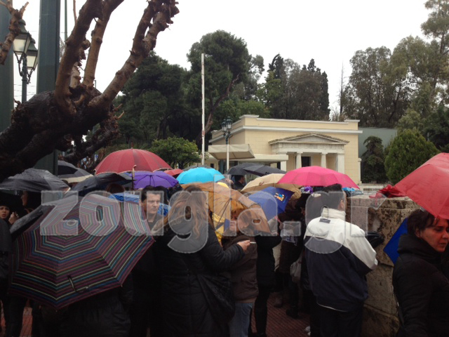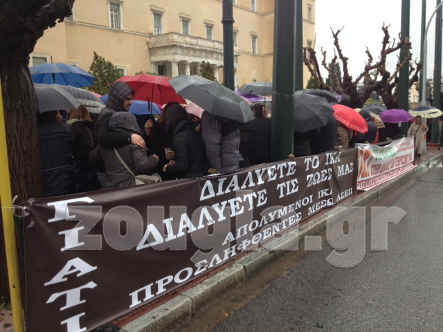 Συγκέντρωση διαμαρτυρίας έξω από τη Βουλή πραγματοποίησαν σήμερα το μεσημέρι περίπου 100 εργαζόμενοι του ΙΚΑ, επιτυχόντες μέσω ΑΣΕΠ το 2008, οι οποίοι πριν από μία εβδομάδα ενημερώθηκαν για την απόλυσή τους.