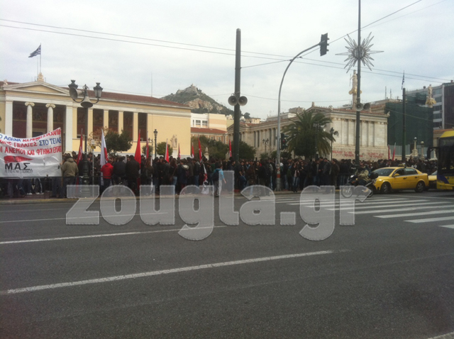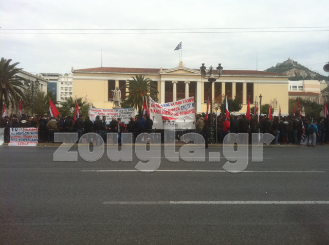 Περίπου 2.000 φοιτητές και σπουδαστές συγκεντρώθηκαν σήμερα το μεσημέρι έξω από τη Βουλή και διαμαρτυρήθηκαν για το σχέδιο «Αθηνά» του Υπουργείου Παιδείας, υποστηρίζοντας ότι υποβαθμίζει τις σπουδές και τα πτυχία τους. Οι φοιτητές συγκεντρώθηκαν νωρίς το μεσημέρι στα Προπύλαια, από όπου έκαναν πορεία και μέσω της Ομόνοιας έφθασαν στο Σύνταγμα.