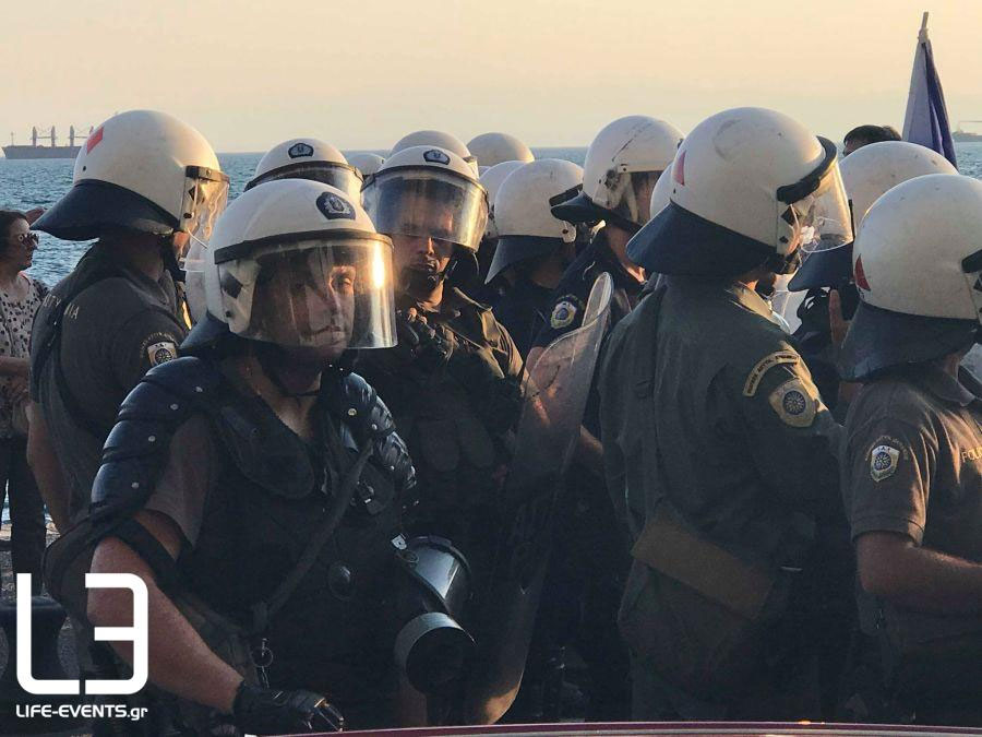 Λίγο αργότερα άρχισε πορεία προς τον Λευκό Πύργο προς το άγαλμα του Βενιζέλου. Ωστόσο, αστυνομικές δυνάμεις είχαν μπλοκάρει τη Λεωφόρο Νίκης στο ύψος της Αγίας Σοφίας και δημιουργήθηκε ένταση. Μετά από μερικά λεπτά, οι διαδηλωτές πέρασαν το πρώτο μπλόκο και εν συνεχεία υπήρξε νέα εστία έντασης στην οδό Στρατηγού Καλλάρη όπου έπεσαν και χημικά.