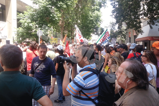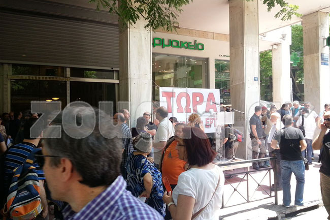 Περίπου 150 διαδηλωτές συγκεντρώθηκαν έξω από τα γραφεία επί της οδού Ακαδημίας και απέκλεισαν τη διέλευση των οχημάτων, φωνάζοντας συνθήματα κατά της κυβέρνησης του πρωθυπουργού Αντώνη Σαμαρά.