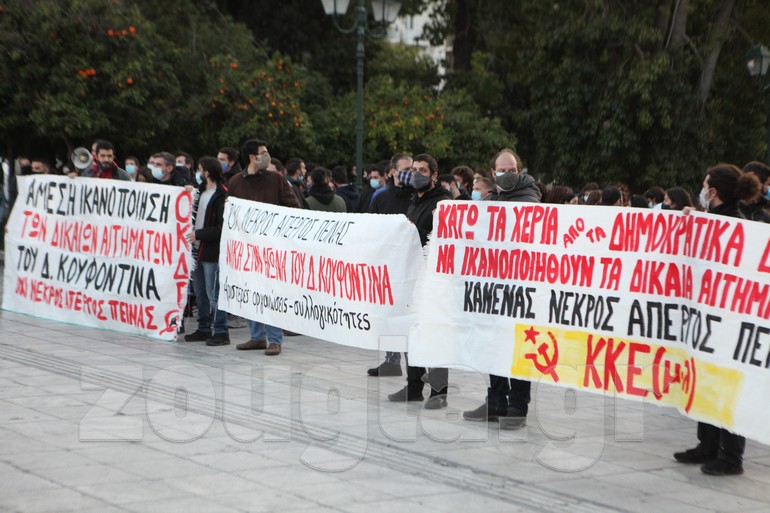 Συγκέντρωση υπέρ του Δημήτρη Κουφοντίνα, ο οποίος βρίσκεται στην 53η ημέρα απεργίας πείνας, πραγματοποιείται αυτή τη στιγμή στην Πλατεία Συντάγματος. Οι διαδηλωτές ζητούν να ικανοποιηθεί το αίτημα του Κουφοντίνα για μεταγωγή του στις φυλακές Κορυδαλλού.