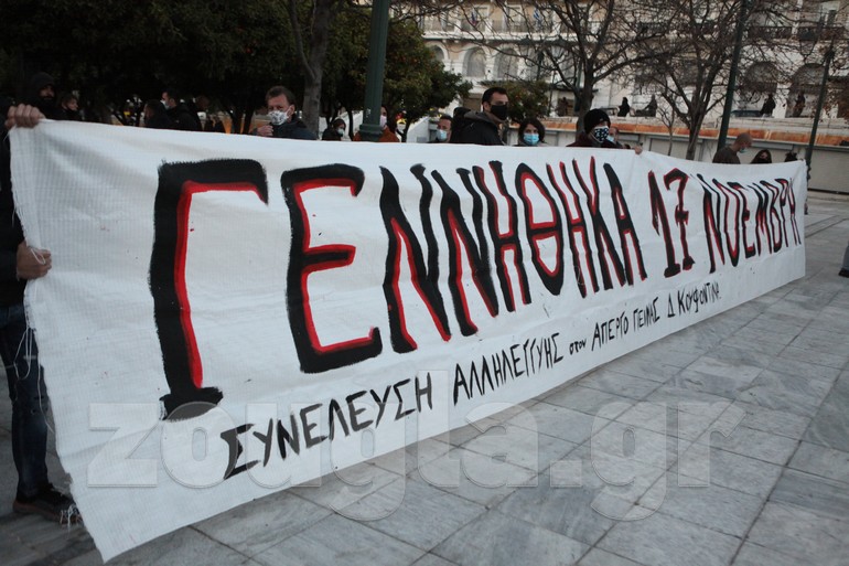 Αρκετές εκατοντάδες διαδηλωτές έχουν καταλάβει το οδόστρωμα στην Λεωφόρο Αμαλίας, μπροστά από τη Βουλή και φωνάζουν συνθήματα υπέρ του απεργού πείνας, ενώ έχουν αναρτήσει πανό που γράφει «Γεννήθηκα 17 Νοέμβρη».