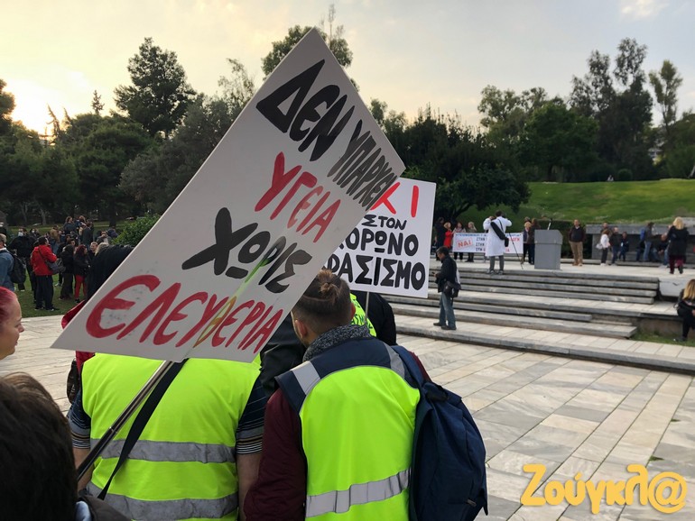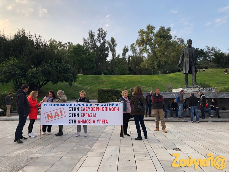 Συγκέντρωση υγειονομικών κατά της υποχρεωτικότητας των εμβολιασμών στο πάρκο Ελευθερίας