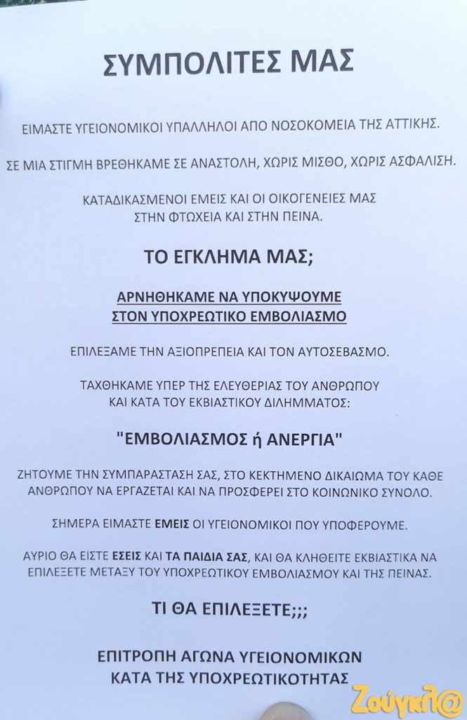 Συγκέντρωση κατά της υποχρεωτικότητας των εμβολιασμών πραγματοποιούν αυτή την ώρα, υγειονομικοί στο Σύνταγμα...