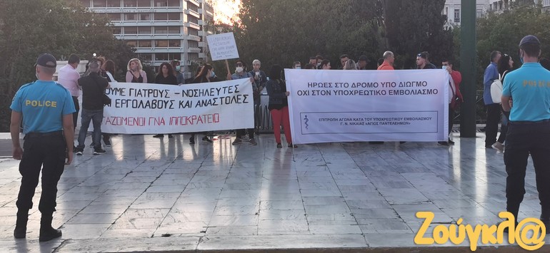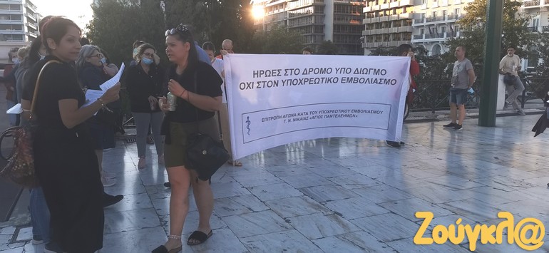 Συγκέντρωση υγειονομικών κατά της υποχρεωτικότητας των εμβολιασμών στο Σύνταγμα
