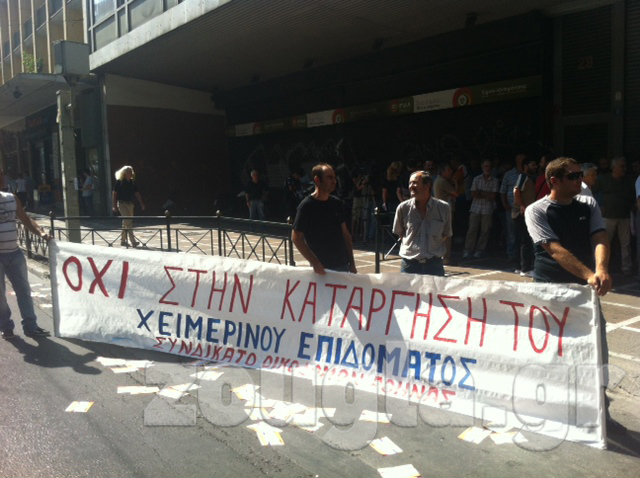 Συγκέντρωση διαμαρτυρίας πραγματοποίησαν από τις 11.00 το πρωί οικοδόμοι έξω από το Υπουργείο Εργασίας επί της Σταδίου.