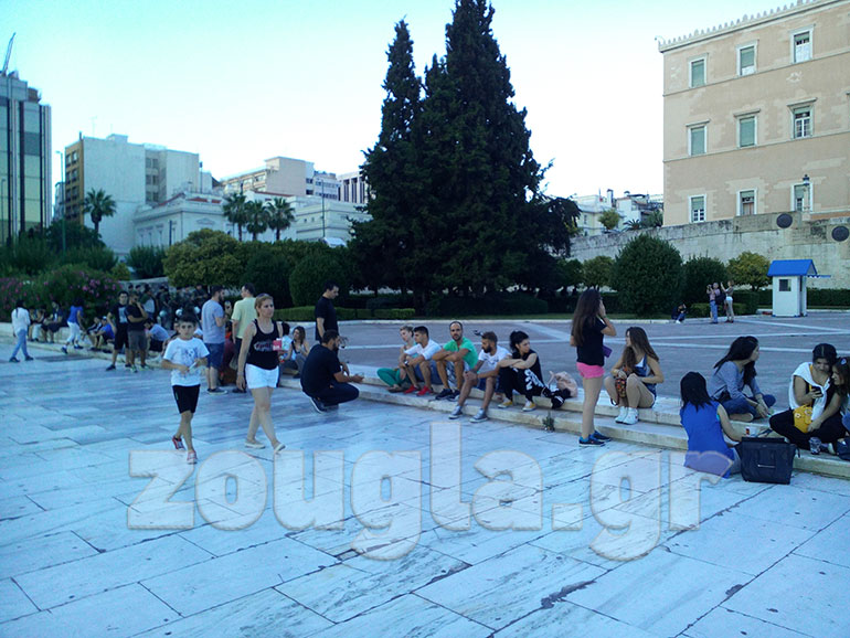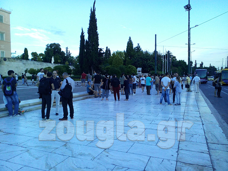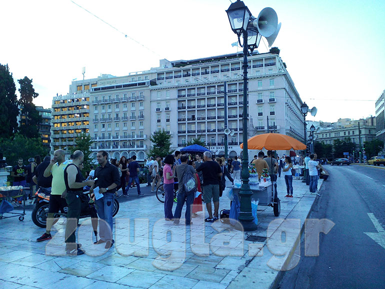 Συγκέντρωση στην πλατεία Συντάγματος πραγματοποίησαν το απόγευμα της Τετάρτης πολίτες, οι οποίοι τάσσονται υπέρ του «ΟΧΙ» στο δημοψήφισμα.