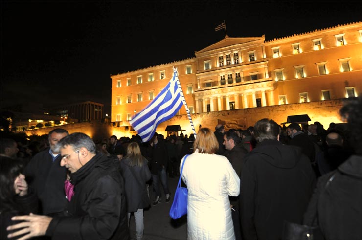 Συγκέντρωση υπέρ των θέσεων της κυβέρνησης στις διαπραγματεύσεις με τους Ευρωπαίους εταίρους πραγματοποιήθηκε το βράδυ της Πέμπτης στην πλατεία Συντάγματος.