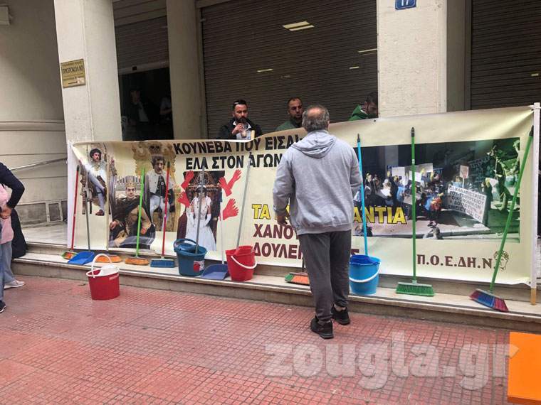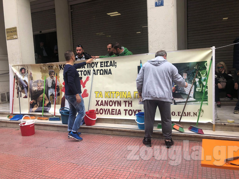 Συγκέντρωση διαμαρτυρίας πραγματοποιούν αυτήν την ώρα έξω από το Υπουργείο Υγείας καθαρίστριες από το Δρομοκαΐτειο.