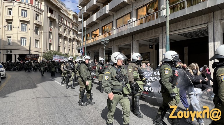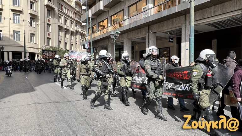 Κατά τη διάρκεια της πορείας, διμοιρίες των ΜΑΤ που είχαν περικυκλώσει τους συγκεντρωμένους, δημιούργησαν ένταση, καθώς έσπρωχναν με τις ασπίδες τους διαδηλωτές. Μάλιστα, ένας από τους αστυνομικούς έβαλε στο στόχαστρό του τον φωτορεπόρτερ της «Ζούγκλας», στον οποίον και επιτέθηκε.
