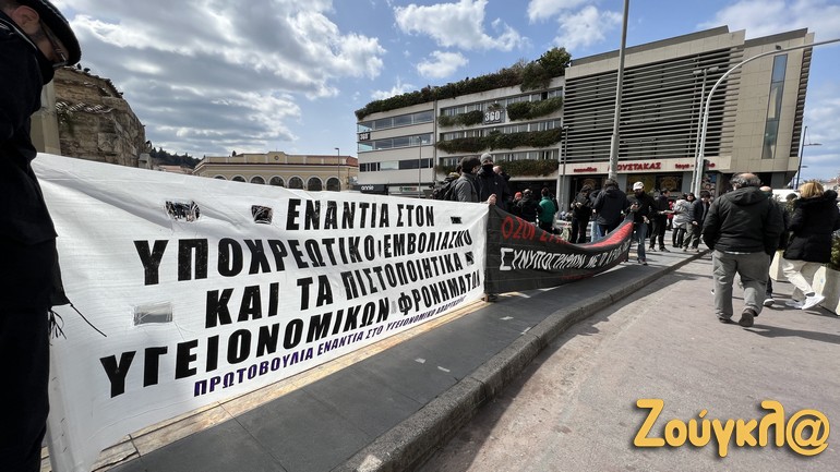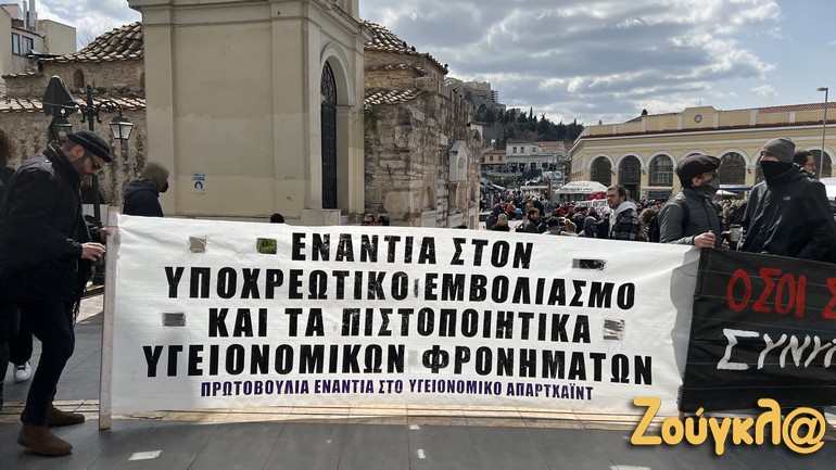 Συγκέντρωση διαμαρτυρίας κατά της υποχρεωτικότητας των εμβολιασμών, των γενικών υγειονομικών μέτρων και των αναστολών εργασίας πραγματοποιήθηκε το μεσημέρι του Σαββάτου στο Μοναστηράκι.