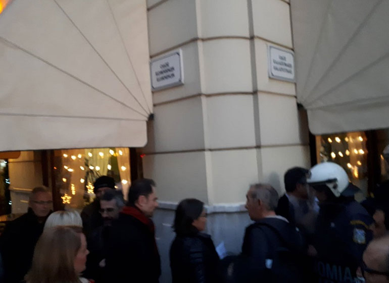 Στο σημείο βρίσκονται και δυνάμεις των ΜΑΤ, οι οποίες δεν επιτρέπουν στα μέλη του Συντονισμού Συλλογικοτήτων να πλησιάσουν στην είσοδο του κτηρίου.