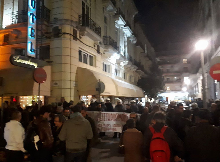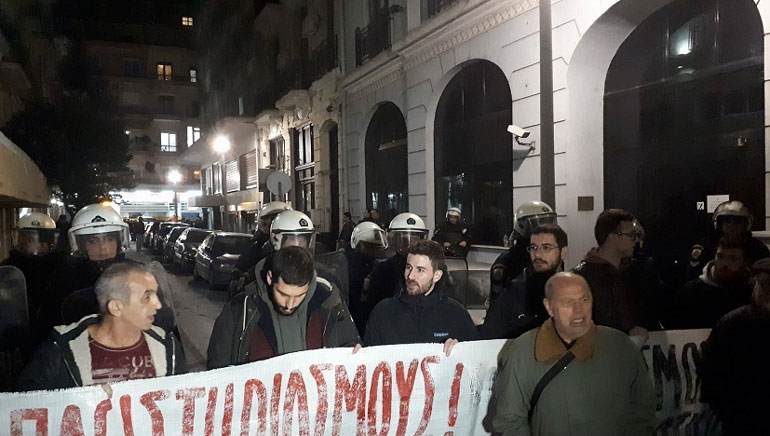 Συγκέντρωση διαμαρτυρίας, πλησίον του κτηρίου, όπου στεγάζεται το εντευκτήριο του Συλλόγου Συμβολαιογράφων Εφετείου Θεσσαλονίκης, πραγματοποιεί αυτή την ώρα ο Συντονισμός Συλλογικοτήτων Θεσσαλονίκης ενάντια στους πλειστηριασμούς.