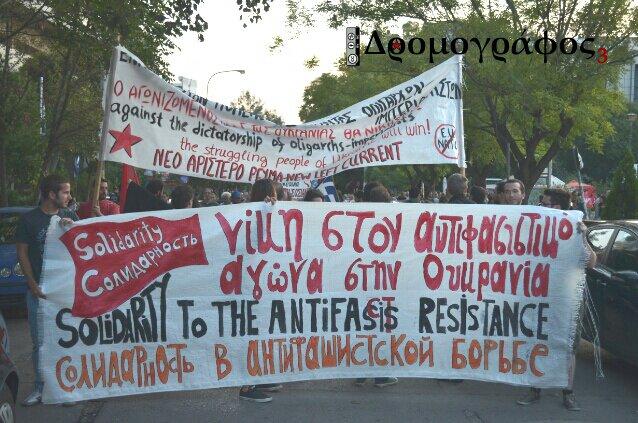 «Η μεγάλη σημερινή συγκέντρωση και πορεία έστειλε ένα μεγάλο μήνυμα του ελληνικού λαού ενάντια στο φασισμό και αλληλεγγύης στους αγωνιζόμενους αντιφασίστες ριζοσπάστες της Ν.Α. Ουκρανίας και τους δημοκράτες όλης της Ουκρανίας.