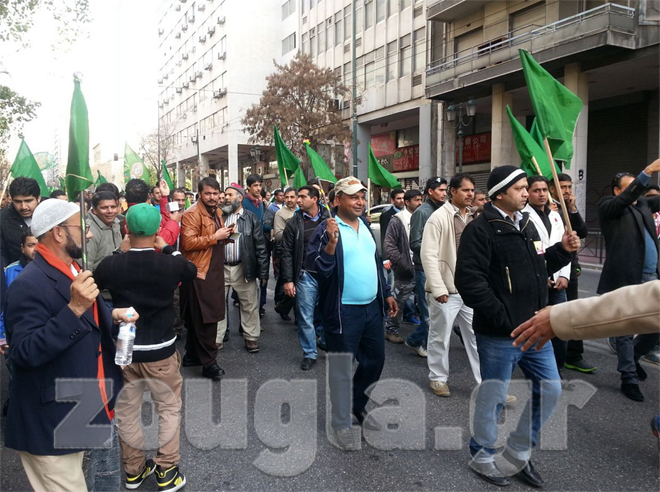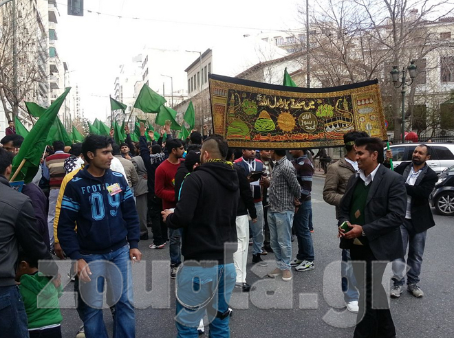 Μουσουλμάνοι που ζουν στην Αττική πραγματοποίησαν πορεία και εν συνεχεία παρακολούθησαν τις εκδηλώσεις στην πλατεία Κουμουνδούρου. Το παρών έδωσαν και τηλεοπτικά συνεργεία από το Πακιστάν.