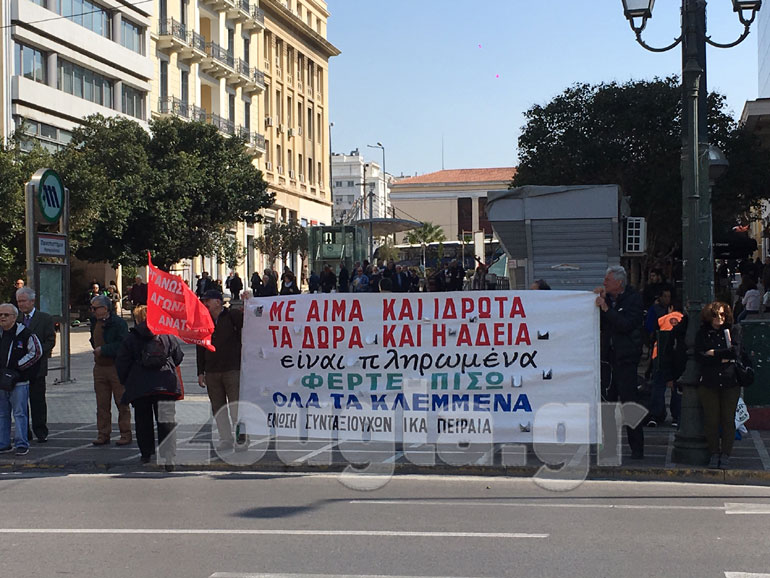 Ολοκληρώθηκε το παναττικό συλλαλητήριο των συνταξιούχων, το οποίο πραγματοποίησαν στο κέντρο της Αθήνας οι συνεργαζόμενες συνταξιουχικές οργανώσεις με βασικά αιτήματα την άμεση καταβολή του δώρου Πάσχα, την αποκατάσταση των συντάξεων και τη δημόσια δωρεάν υγεία. Οι συνταξιούχοι ζήτησαν συνάντηση με τον πρωθυπουργό, η οποία προγραμματίστηκε για το ερχόμενο Σάββατο στις 13.00.