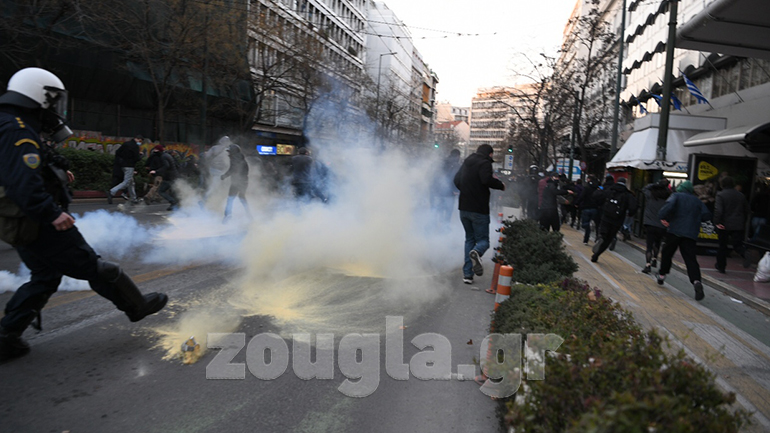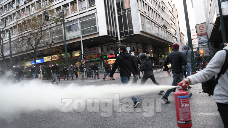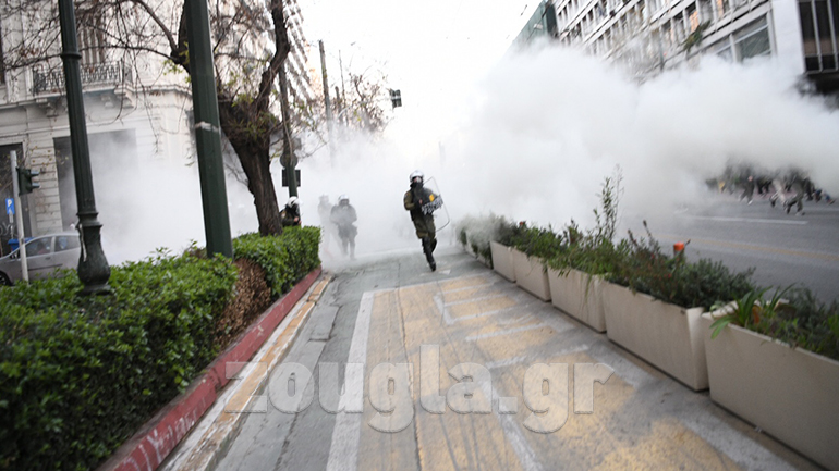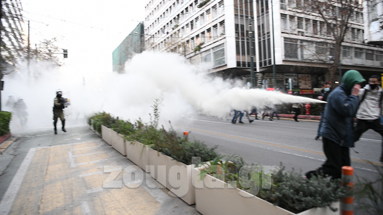 Ένταση σημειώθηκε το απόγευμα της Τετάρτης στο κέντρο της Αθήνας με χημικά, χειροβομβίδες κρότου λάμψης, δακρυγόνα, προσαγωγές και ρίψη νερού από αύρα στην πορεία για τον Δημήτρη Κουφοντίνα.