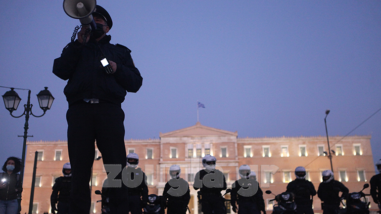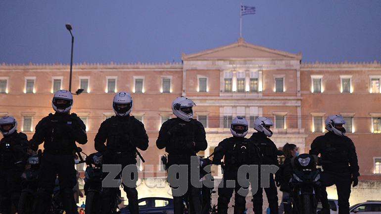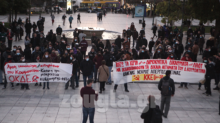Παράλληλα, στο Σύνταγμα συγκεντρώθηκε κόσμος με πανό, φωνάζοντας συνθήματα σε ένδειξη αλληλεγγύης για τον Δ. Κουφοντίνα. Οι αστυνομικές δυνάμεις περικύκλωσαν τους διαδηλωτές, ωστόσο δεν σημειώθηκαν επεισόδια στην περιοχή του Συντάγματος και η διαδήλωση έληξε περί τις 19:00.