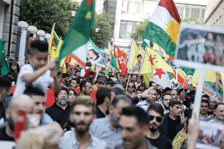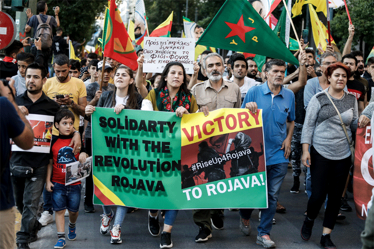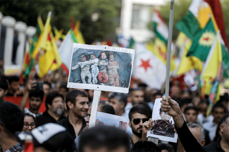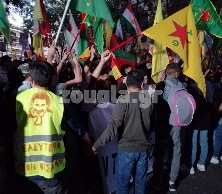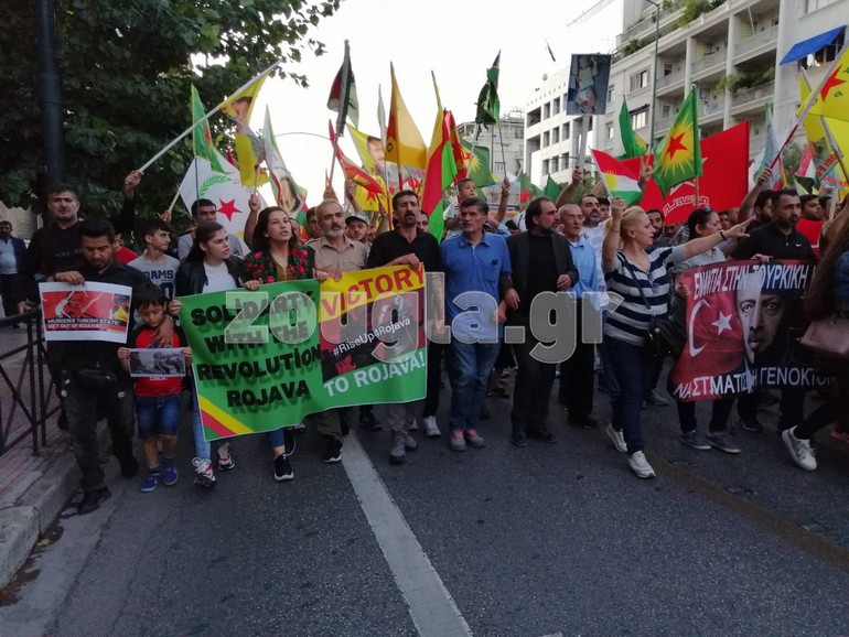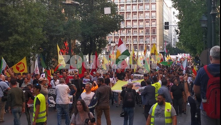 Συγκέντρωση διαμαρτυρίας και πορεία πραγματοποίησαν το απόγευμα του Σαββάτου στο κέντρο της Αθήνας, Κούρδοι που ζουν στην Ελλάδα, για την τουρκική επιχείρηση στη Βόρεια Συρία.