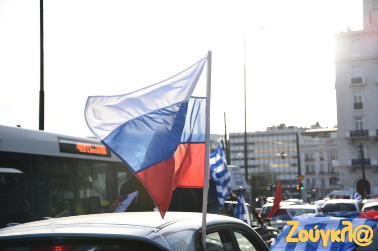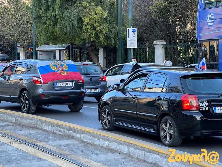 Η πορεία των Ουκρανών διαστραυρώθηκε με την αυτοκινητοπορεία που πραγματοποίησαν φιλορώσοι ποντιακής καταγωγής κατά της «ρωσοφοβίας και του ρατσισμού». Σημειώθηκε μία μικρή ένταση με την επέμβαση της αστυνομίας να είναι άμεση.