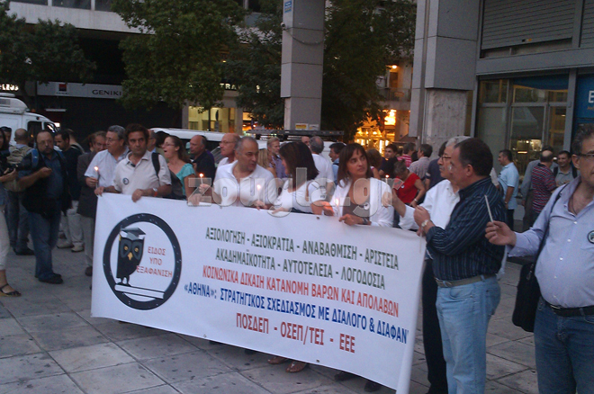 Συγκέντρωση διαμαρτυρίας στο Σύνταγμα πραγματοποίησαν το απόγευμα οι ομοσπονδίες των καθηγητών πανεπιστημίου (ΠΟΣΔΕΠ), των τεχνολογικών ιδρυμάτων (ΟΣΕΠ-ΤΕΙ) και η Ένωση Ελλήνων Ερευνητών Ελλάδας (ΕΕΕ).