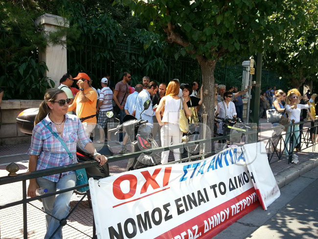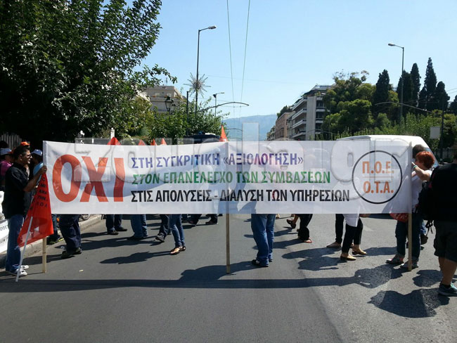 Την ίδια ώρα έξω από το υπουργείο συγκεντρώθηκαν επίσης εργαζόμενοι του Υπουργείου Πολιτισμού και η ΠΟΕ-ΟΤΑ. Σύμφωνα με την ΑΔΕΔΥ, η μετατροπή των συμβάσεων θα οδηγήσει σε νέο γύρο απολύσεων στο Δημόσιο. Παράλληλα, αντιδρά στη νέα προσφυγή της κυβέρνησης στη Δικαιοσύνη προκειμένου να κηρυχθεί παράνομη και καταχρηστική η απεργία – αποχή από τη διαδικασία εφαρμογής της αξιολόγησης.