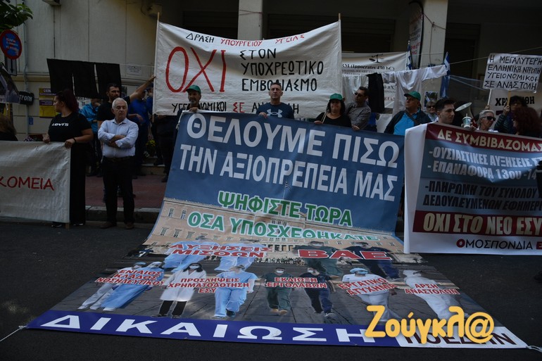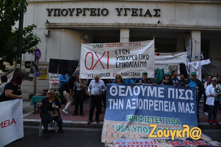 Συγκέντρωση στην Πλατεία Μαβίλη και πορεία προς το υπουργείο Υγείας πραγματοποιούν αυτή την ώρα η Ομοσπονδία Ενώσεων Νοσοκομειακών Γιατρών Ελλάδας (ΟΕΝΓΕ) και η Πανελλήνια Ομοσπονδία Εργαζομένων στα Δημόσια Νοσοκομεία (ΠΟΕΔΗΝ).