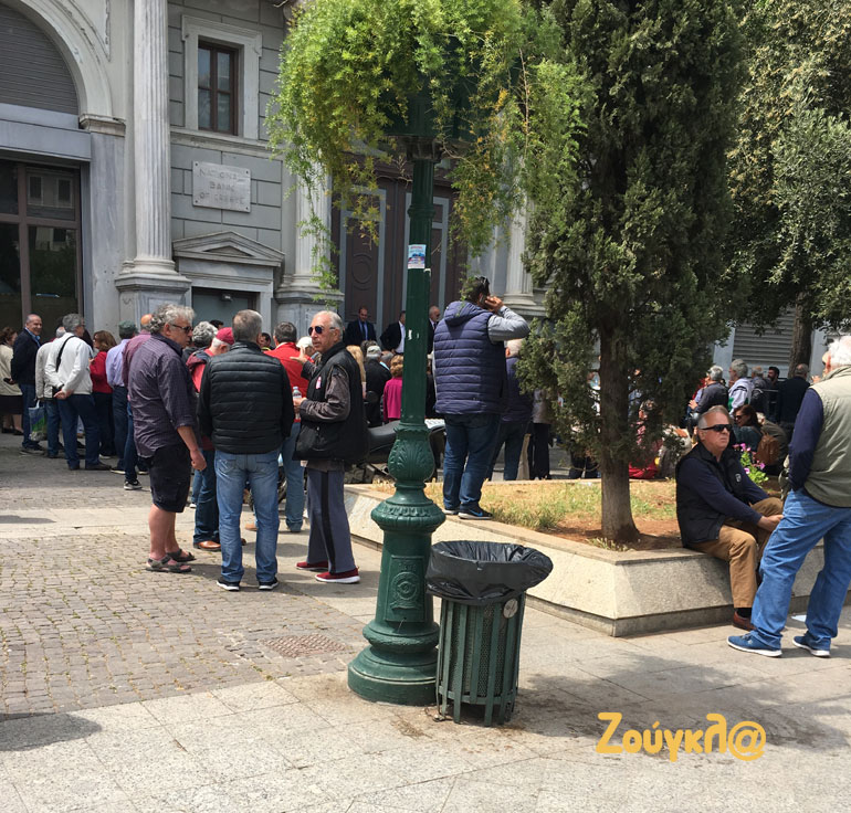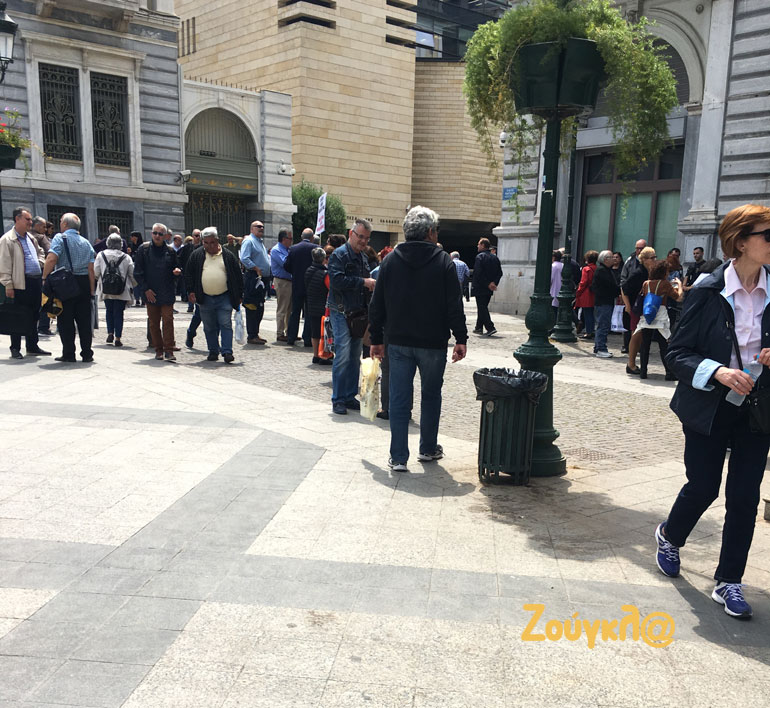 Συγκέντρωση διαμαρτυρίας πραγματοποιούν αυτήν την ώρα συνταξιούχοι της Εθνικής Τράπεζας έξω από τα κεντρικά γραφεία στο κέντρο της Αθήνας, Θεμιστοκλέους και Αιόλου.