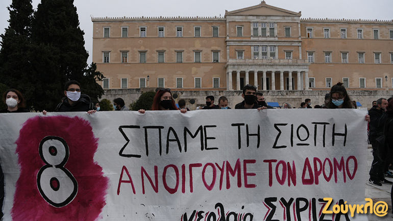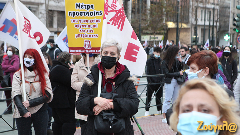 Παράλληλα, στο Σύνταγμα πραγματοποιήθηκε συγκέντρωση για την Ημέρα της Γυναίκας, στην οποία συμμετείχαν η νεολαία του ΣΥΡΙΖΑ και οργανώσεις ηθοποιών, μεταξύ άλλων.