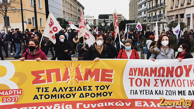 Δείτε βίντεο από την πορεία των φεμινιστικών οργανώσεων και εργατικών συνδικάτων που έλαβε χώρα έπειτα από συγκέντρωση στο Σύνταγμα, με κατεύθυνση προς την Ομόνοια:
