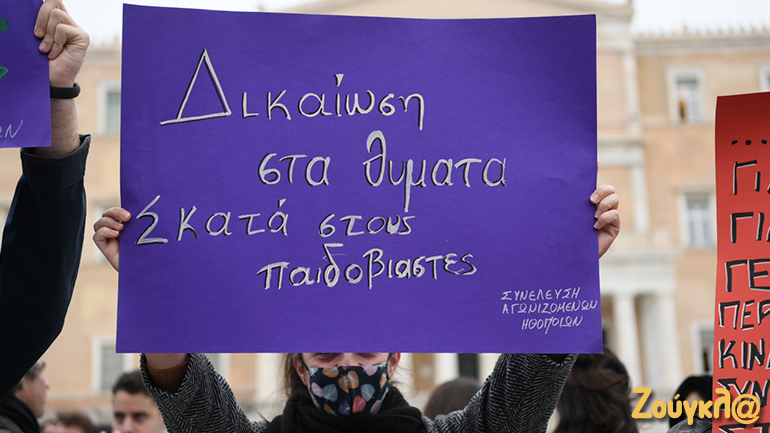 Σε συγκέντρωση στα Προπύλαια συμμετείχαν η Ομοσπονδία Γυναικών Ελλάδος, φεμινιστικές οργανώσεις αλλά και το Π.Α.Μ.Ε.. ενώ έδωσε το παρών αντιπροσωπεία της ΚΕ του ΚΚΕ, με επικεφαλής τον γενικό γραμματέα της, Δημήτρη Κουτσούμπα.