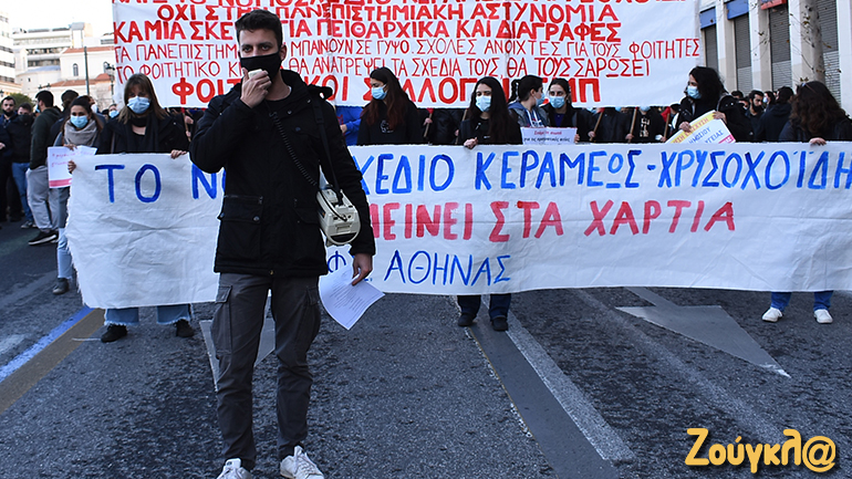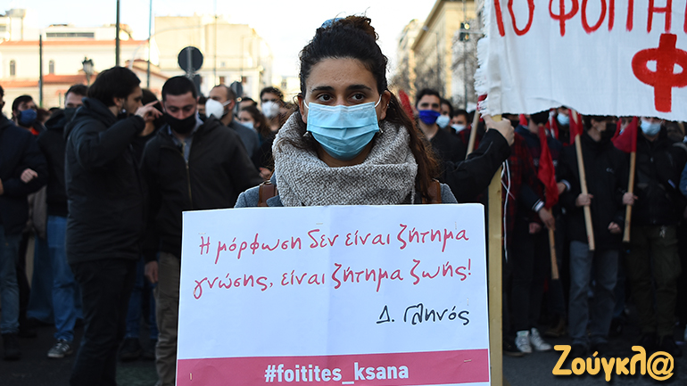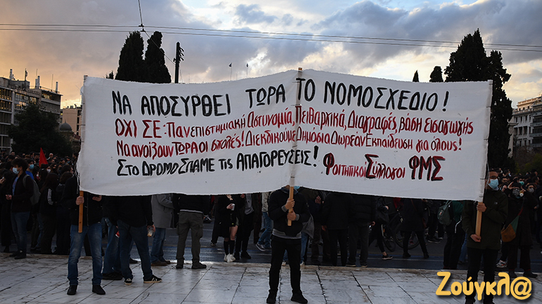 Νωρίτερα, φοιτητικοί σύλλογοι με κεντρικό σύνθημα «Απ’ τα ιδρύματά μας δεν λείπει η αστυνομία, δώστε λεφτά, καθηγητές, βιβλία», πραγματοποίησαν προσυγκέντρωση στα Προπύλαια και με πορεία κατευθύνθηκαν μέχρι τη Βουλή.