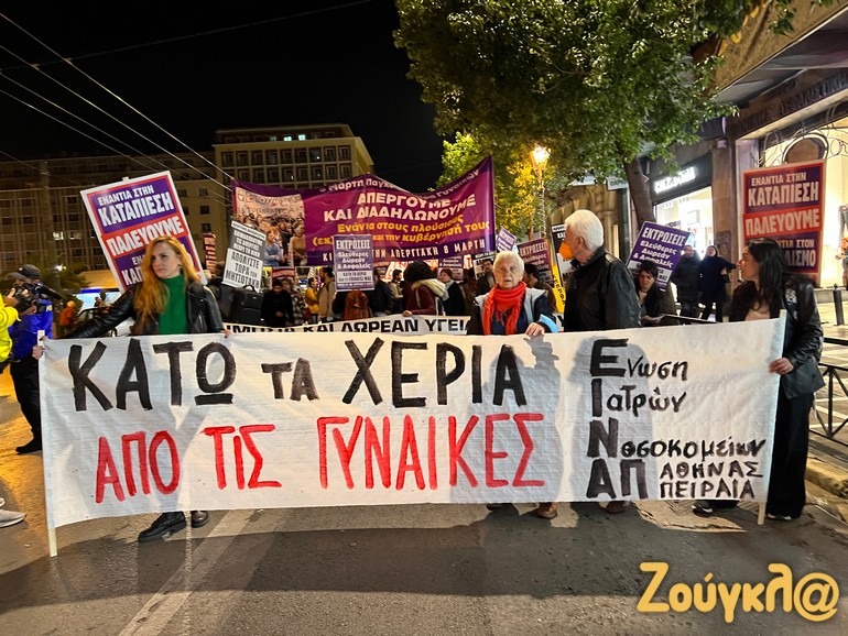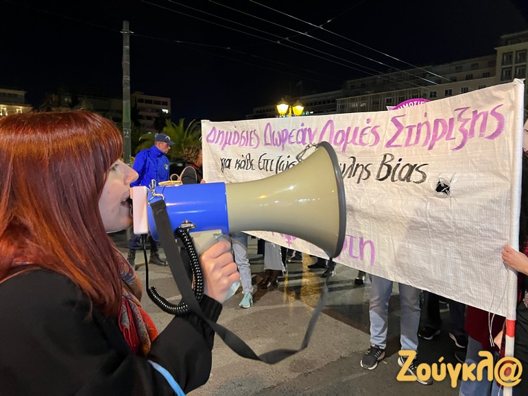 Στο σημείο βρέθηκαν, μεταξύ άλλων, φεμινιστικές οργανώσεις με πανό αφιερωμένα στην ημέρα. Στη συνέχεια πλήθος κόσμου συγκεντρώθηκε μπροστά στη Βουλή, όπου προβλήθηκε και μήνυμα «Βάλε στοπ στη Βία».