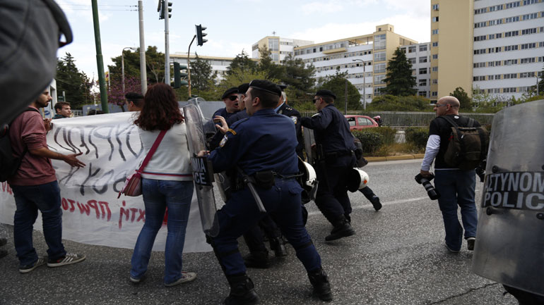 Οι διαδηλωτές συγκεντρώθηκαν στο μετρό Κατεχάκη και κατευθύνθηκαν προς το υπουργείο, όπου αστυνομικές δυνάμεις εμπόδισαν την προσέγγισή τους.