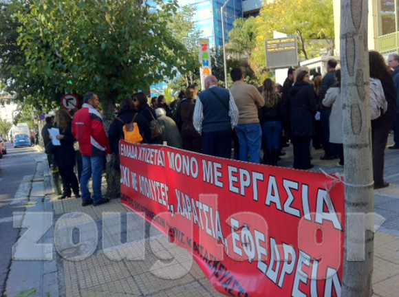 Έξω από το κτήριο όπου στεγάζεται το Υπουργείο Ανάπτυξης, επί της Λ. Μεσογείων, βρίσκονται περίπου 100 εργαζόμενοι.