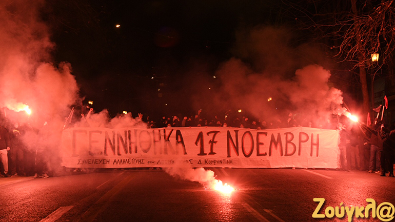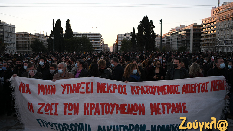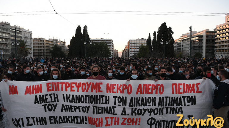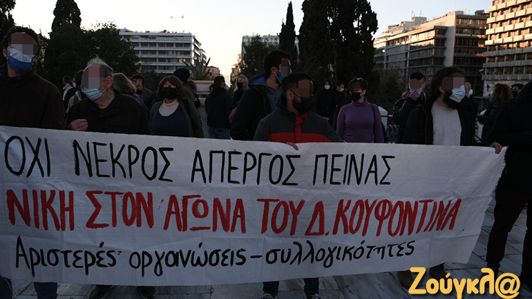 Συγκέντρωση διαμαρτυρίας πραγματοποιήθηκε στο Σύνταγμα το απόγευμα της Τετάρτης, και ακολούθησε πορεία προς την Ομόνοια σε ένδειξη συμπαράστασης προς τον Δημήτρη Κουφοντίνα που άρχισε απεργία πείνας στις 8 Ιανουαρίου 2021 με αίτημα τη μεταγωγή του στις φυλακές Κορυδαλλού, ενώ από τη Δευτέρα 22 Φεβρουαρίου ξεκίνησε και απεργία δίψας.