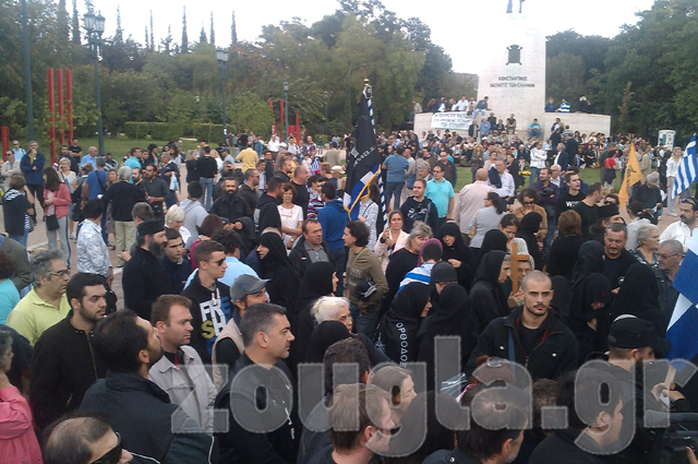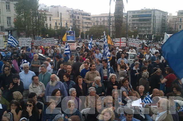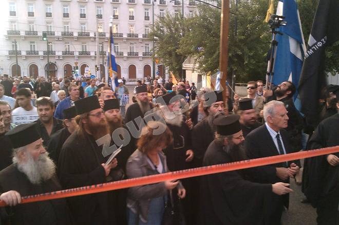 Εκατοντάδες μέλη της Πανελλήνιας Κληρικολαϊκής Επιτροπής Αγώνα συγκεντρώθηκαν λίγο μετά τις 15.00 το μεσημέρι στο Πεδίον του Άρεως, ενώ ακολούθησε πορεία προς την Βουλή για την επίδοση ψηφίσματος.