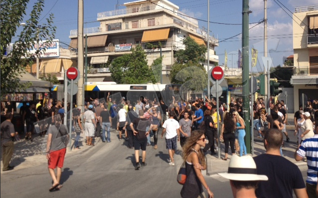 Τα πνεύματα σε κάποια στιγμή οξύνθηκαν ιδιαίτερα και μέρος των συγκεντρωμένων, επιτέθηκε εναντίον διερχόμενου λεωφορείου σπάζοντάς του κάποια τζάμια και προκαλώντας σε αυτό μικροζημιές, ενώ παράλληλα έγραψαν επάνω στο παρμπρίζ με κόκκινα γράμματα τη λέξη «δολοφόνοι».