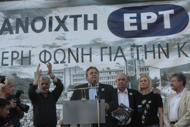 Εν τω μεταξύ, η νέα περιφερειάρχης Αττικής Ρένα Δούρου δήλωσε για την ΕΡΤ: «Το έγκλημα διαρκείας που ξεκίνησε ακριβώς πριν από έναν χρόνο, συνεχίζεται. Δώδεκα μήνες χωρίς τη φωνή της Ελλάδας. Δώδεκα μήνες χωρίς δημόσια ραδιοτηλεόραση άξια αυτού του ονόματος. Δώδεκα μήνες ανάπηρη Δημοκρατία. Το κλείσιμο της ΕΡΤ συμπυκνώνει τον αυταρχισμό και την οπισθοδρομικότητα των πολιτικών λιτότητας. Αποκρυσταλλώνει το κοινωνικά επώδυνο και οικονομικά άστοχο αδιέξοδο, που εξακολουθούν να βιώνουν σήμερα, όχι μόνο οι εργαζόμενοι της ΕΡΤ αλλά και οι χιλιάδες «διαθέσιμοι» του δημοσίου τομέα όπως και οι χιλιάδες άνεργοι του ιδιωτικού».