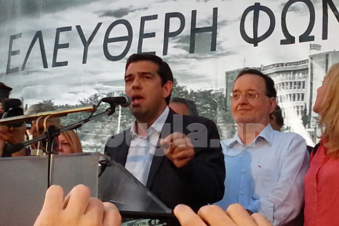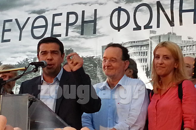 Στο βήμα ανέβηκε και ο πρόεδρος των Ανεξαρτήτων Ελλήνων Πάνος Καμμένος. «Θα σταθούμε όρθιοι όσο χρόνο κι αν χρειαστεί» δήλωσε ο Πάνος Καμμένος και κάλεσε τους συνταξιούχους και τους ανέργους να κατέβουν στον δρόμο. Επιπλέον ζήτησε, «Όλοι μαζι να ανατρέψουν το ξενόφερτο καθεστώς».