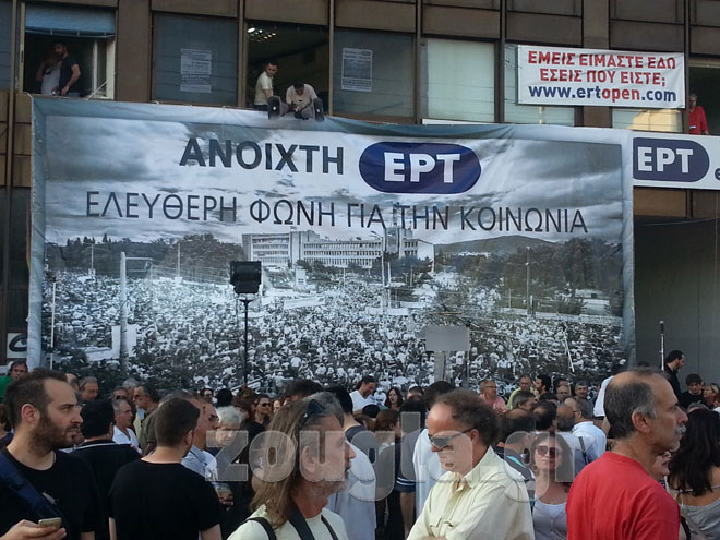Υπενθυμίζεται ότι την Τρίτη 11 Ιουνίου 2013 ξημερώματα Τετάρτης, ένα λεπτό μετά τα μεσάνυχτα, το σήμα της ΕΡΤ σταμάτησε να εκπέμπει. Στις 18.00 το απόγευμα της Τρίτης, ο τότε κυβερνητικός εκπρόσωπος Σίμος Κεδίκογλου ανακοινώνει το λουκέτο στη Δημόσια Τηλεόραση. Στο μήνυμά του έκανε λόγο για «μοναδική περίπτωση αδιαφάνειας και σπατάλης» και τόνισε ότι η δημόσια Ραδιοφωνία και Τηλεόραση, θα ξαναλειτουργήσει με λιγότερους εργαζόμενους. Το σήμα της ΕΡΤ – αρχικά αναλογικό και ακολούθως ψηφιακό – άρχισε σταδιακά να κόβεται, από τις 10 τη νύχτα, σε διάφορες περιοχές της Ελλάδας.