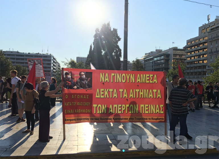 Συγκέντρωση συμπαράστασης στους απεργούς πείνας της Τουρκίας πραγματοποιείται το απόγευμα της Πέμπτης στην πλατεία Συντάγματος.
