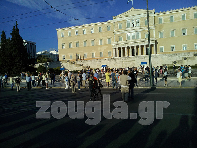Ο κόσμος άρχισε να συγκεντρώνεται περίπου στις 19:30 το απόγευμα στην Πλατεία Συντάγματος, αλλά πολύ γρήγορα μεταφέρθηκε και μπροστά από το μνημείο του Άγνωστου Στρατιώτη κλείνοντας την λεωφόρο Αμαλίας. Μάλιστα αρκετοί από τους διαδηλωτές ανέβηκαν και τις σκάλες που οδηγούν στο προαύλιο της Βουλής, παραμένοντας εκεί για αρκετή ώρα.