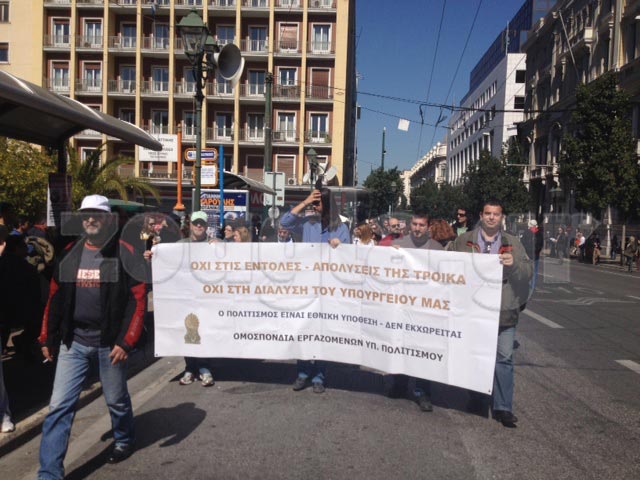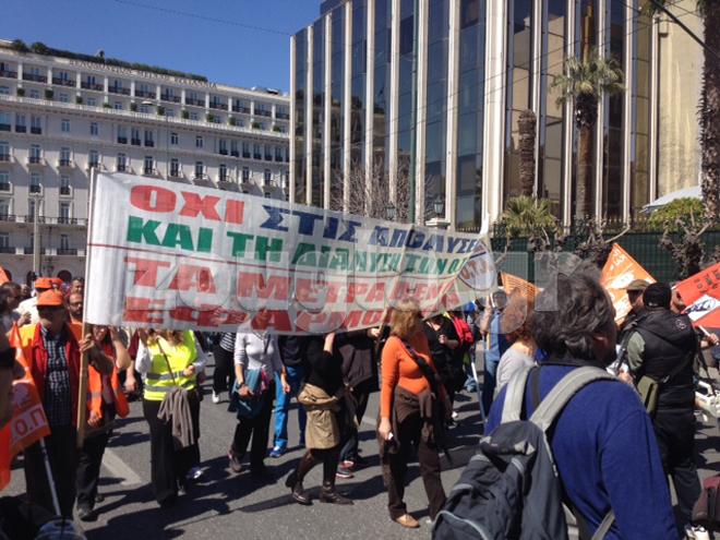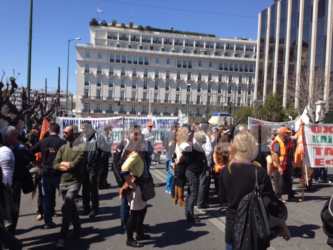 Λίγα λεπτά πριν τις 14.00 ολοκληρώθηκε η διαδήλωση διαμαρτυρίας στο κέντρο της Αθήνας, στο πλαίσιο της 48ωρης απεργίας της ΑΔΕΔΥ ενάντια στις επικείμενες απολύσεις διαθεσίμων.