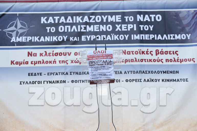 Οι διοργανωτές κάλεσαν σε μαζική συμμετοχή στην κινητοποίηση για την αποφασιστική καταδίκη του ΝΑΤΟ, το οποίο στη Σύνοδό του θα πάρει νέες φονικές αποφάσεις κλιμάκωσης της ιμπεριαλιστικής του δράσης, για να καταγγελθεί η κυβερνητική πολιτική που εμπλέκει τη χώρα και τον λαό σε μεγάλες περιπέτειες, για να ειπωθεί ένα μεγάλο «όχι» στους ιμπεριαλιστικούς πολέμους και να διατρανωθεί το αίτημα για κλείσιμο των αμερικανοΝΑΤΟικών βάσεων, για καμία εμπλοκή της χώρας στους ιμπεριαλιστικούς σχεδιασμούς, για να φύγει το ΝΑΤΟ από το Αιγαίο, για δυνάμωμα της αλληλεγγύης στους πρόσφυγες.