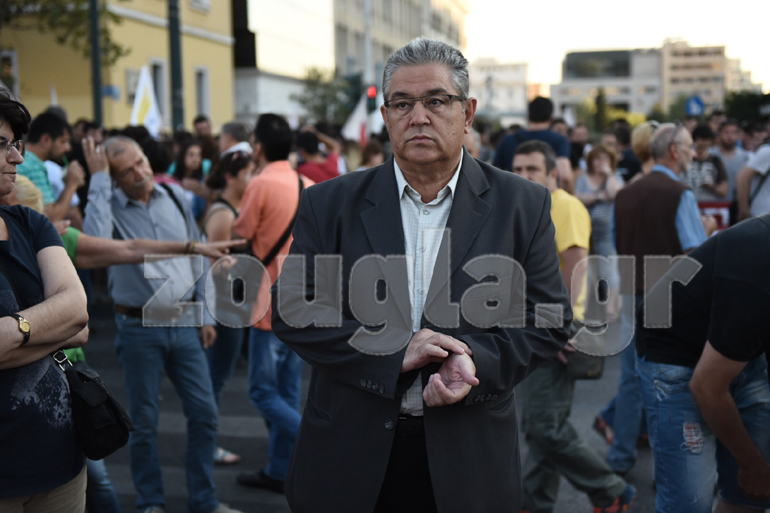 Το παρών στη συγκέντρωση έδωσε ο γενικός γραμματέας του ΚΚΕ Δημήτρης Κουτσούμπας.