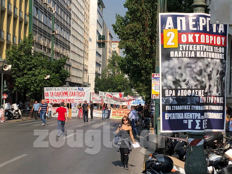Η ΓΣΕΕ έχει προκηρύξει 24ωρη απεργία, ενώ η ΑΔΕΔΥ έχει προχωρήσει σε στάση εργασίας από τις 11.00 έως τη λήξη του ωραρίου. Συγκεντρώσεις διαμαρτυρίας πραγματοποιήθηκαν από κοινού με το Εργατοϋπαλληλικό Κέντρο Αθήνας και άλλα σωματεία στην πλατεία Κλαυθμώνος, ενώ ακολούθησε πορεία προς τη Βουλή των Ελλήνων.