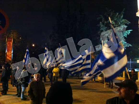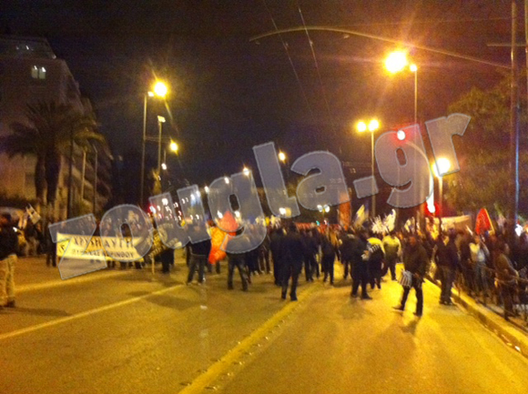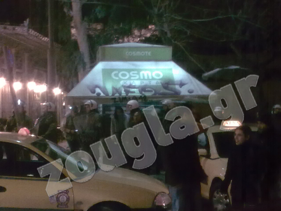 Ισχυρή παρουσία αστυνομικών δυνάμεων, όμως, δεν επέτρεπε στα μέλη της Χρυσής Αυγής να συνεχίσουν την πορεία τους προς την Ομόνοια, κάτι που προκάλεσε και τη δυσαρέσκειά τους. Τελικά, η πορεία άλλαξε κατεύθυνση, περίπου στις 21.20 έφτασαν περί τα 100 μ. μακριά από το Μέγαρο Μουσικής. Στο σημείο υπήρξε ισχυρή αστυνομική παρουσία με δύο κλούβες. Οι διαδηλωτές άρχισαν να διαλύονται περί τις 21.25.