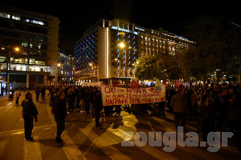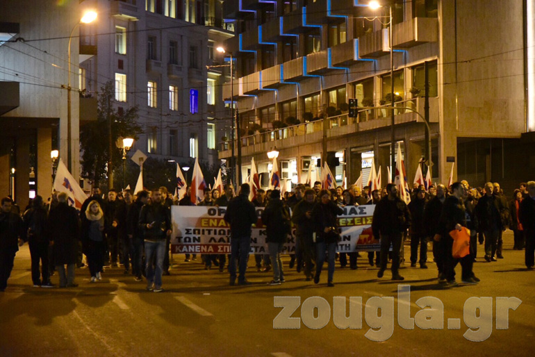 Ολοκληρώθηκε το συλλαλητήριο που πραγματοποιήθηκε στο κέντρο της Αθήνας το βράδυ της Τετάρτης από το ΠΑΜΕ, κατά των πλειστηριασμών. Οι διαδηλωτές συγκεντρώθηκαν νωρίτερα στην Ομόνοια και κατευθύνθηκαν προς το υπουργείο Οικονομικών.